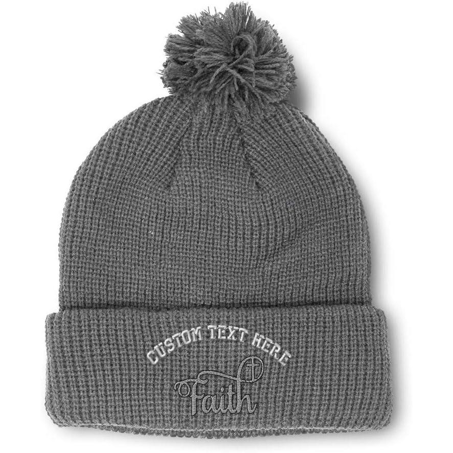 Pom Pom Beanies for Women Faith Christian Cross Embroidery Skull Cap Winter Hats for Men Acrylic 1 Size(Light Grey Personalized Text Here)
