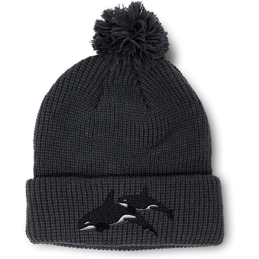 Pom Pom Beanies for Women Killer Whales Embroidery Skull Cap Winter Hats for Men Acrylic 1 Size(American X Design Only)