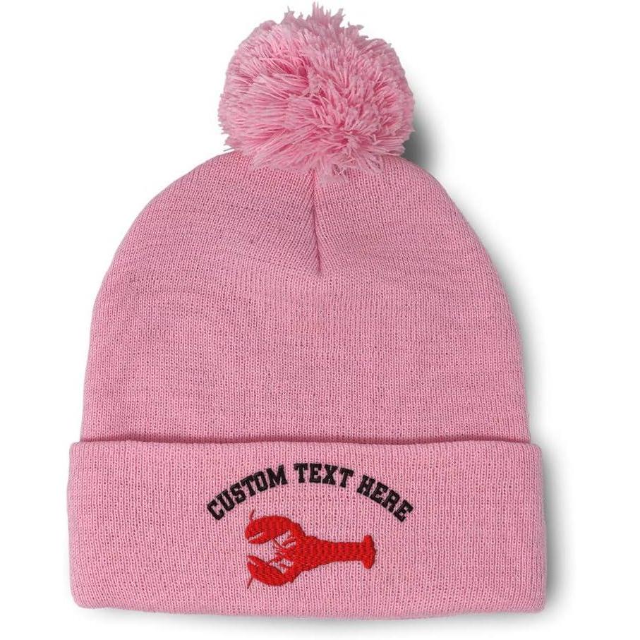 Pom Pom Beanies for Women Lobster B Embroidery Skull Cap Winter Hats for Men Acrylic 1 Size(Soft Pink Personalized Text Here)