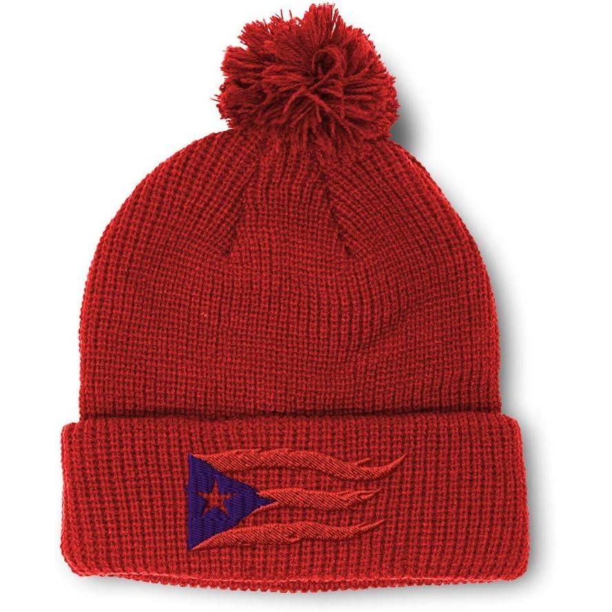 Pom Pom Beanies for Women Puerto Rico Flame Flag Black Embroidery Skull Cap Winter Hats for Men 1 Size(Red Design Only)