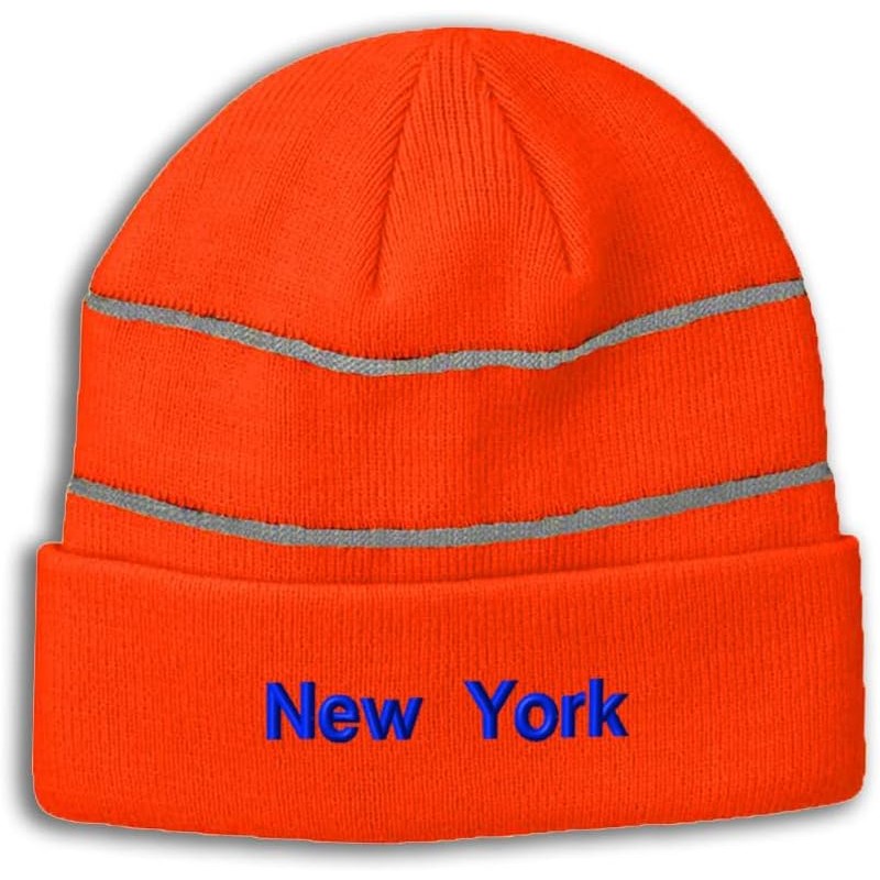 Reflective Beanie for Men & Women New York Empire State Proud Acrylic 1 Size(Neon Orange)
