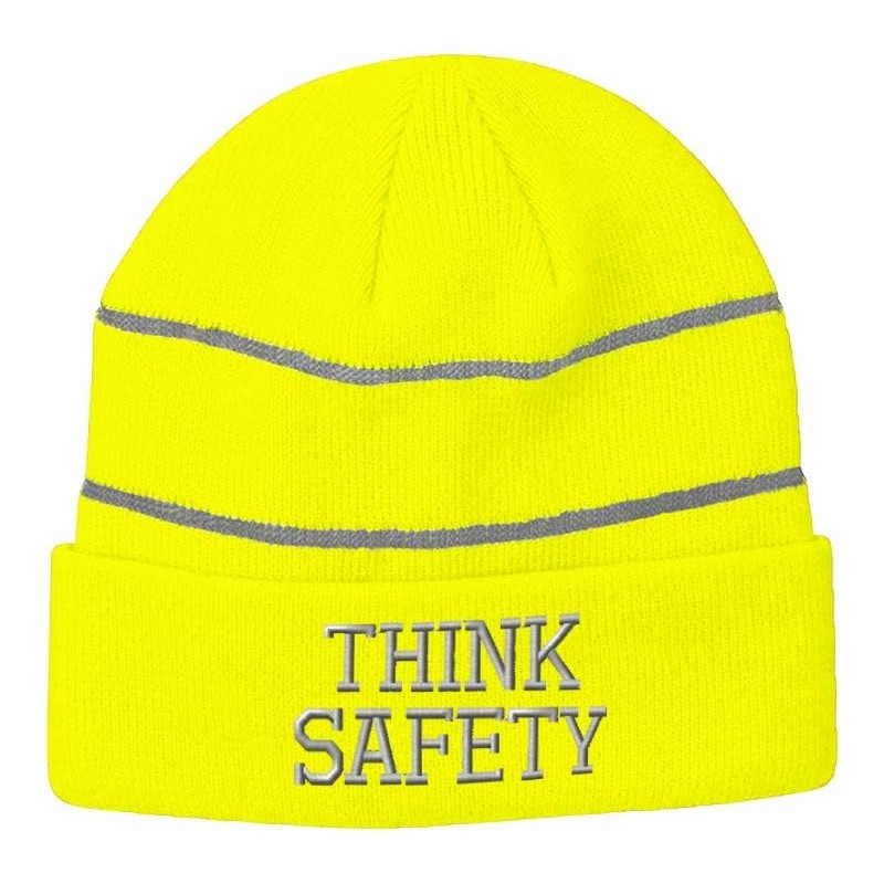 Reflective Beanie for Men & Women Think Safety B Embroidery Acrylic 1 Size(Neon Yellow)
