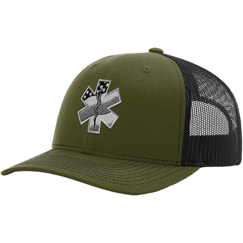 Richardson Structured Mesh Trucker Hat Paramedic A Embroidery Hat Snaps One Size(Loden/Black)
