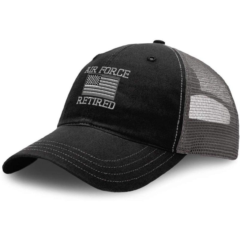 Perfect for someone who is looking for American flag baseball cap, air force soft trucker hats, USA dad hat, patriot mens hat, country trucker hat for men, mesh hat, soft mesh cap, trucker hat, military baseball hat, retired mens trucker hat.