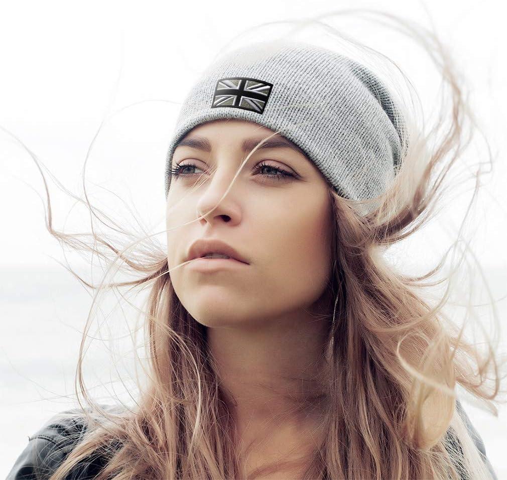 Slouchy Beanie for Men British Flag B Blackwhite Embroidery Women Skull Cap(Black Grey)