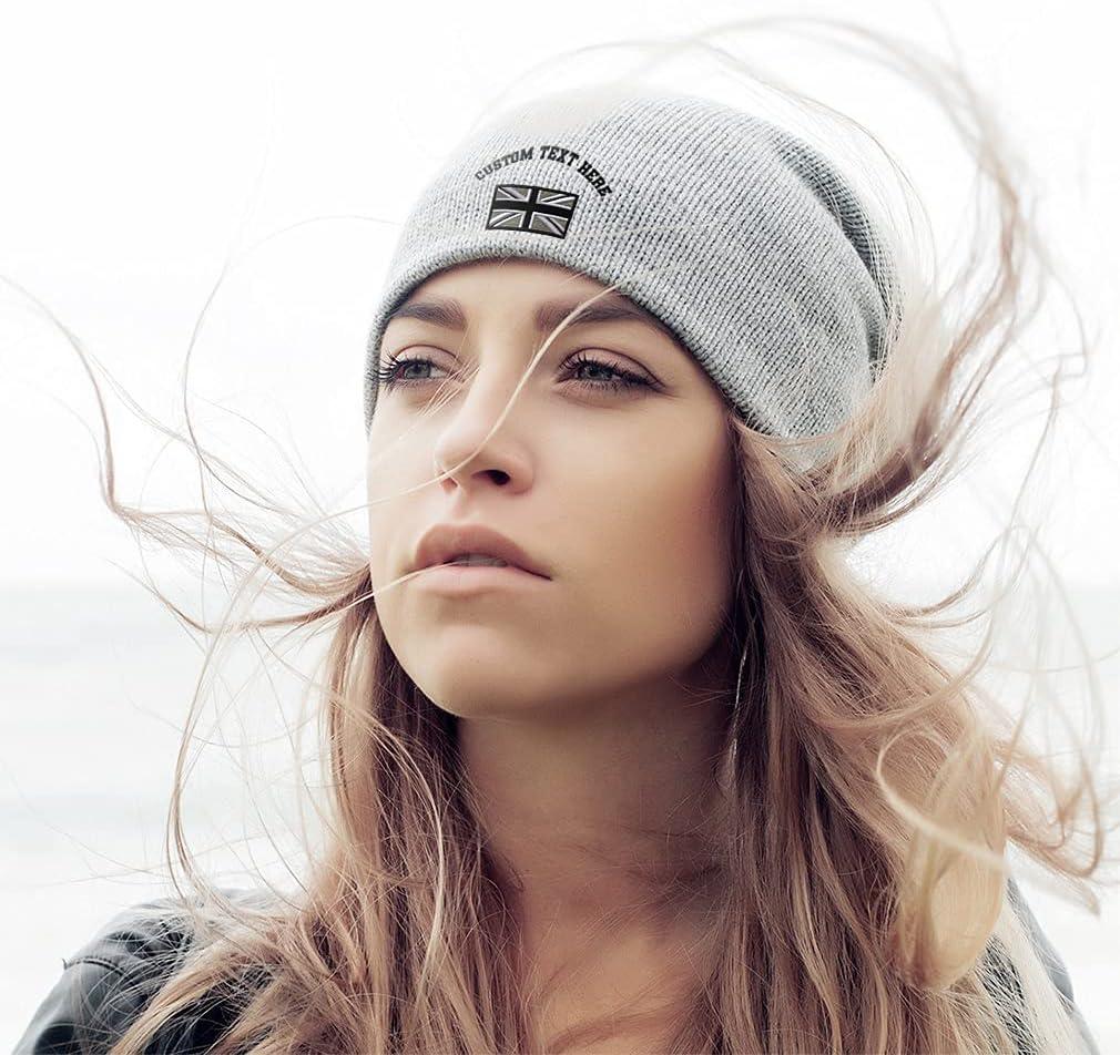 Slouchy Beanie for Men British Flag B Blackwhite Embroidery Women Skull Cap(Dark Grey)