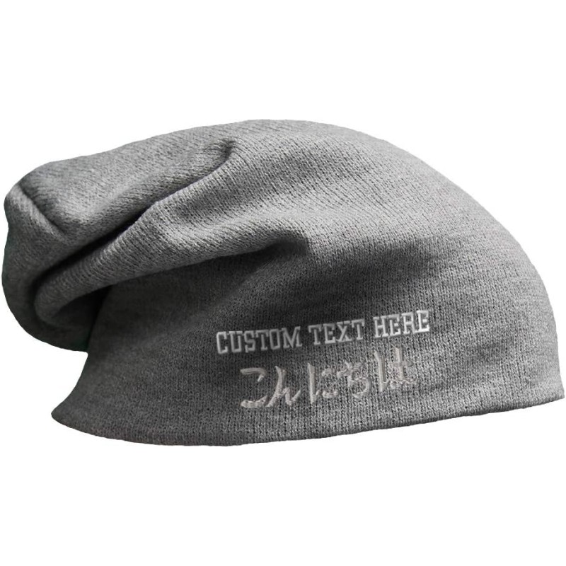 Slouchy Beanie for Men Japanese Hello Konnichiwa B Embroidery Women Skull Cap(Dark Grey Personalized Text Here)