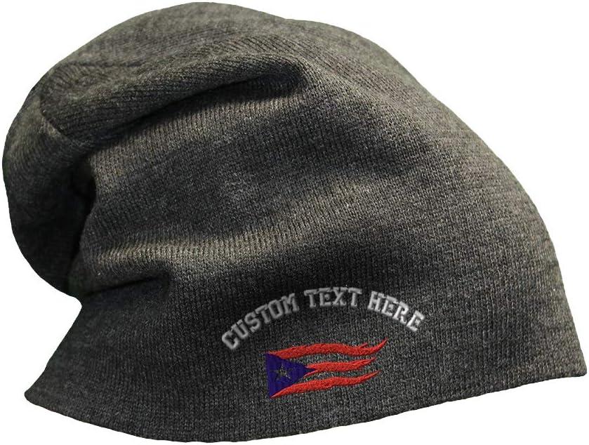 Slouchy Beanie for Men Puerto Rico Flame Flag Black Embroidery Women Skull Cap(Black Grey)