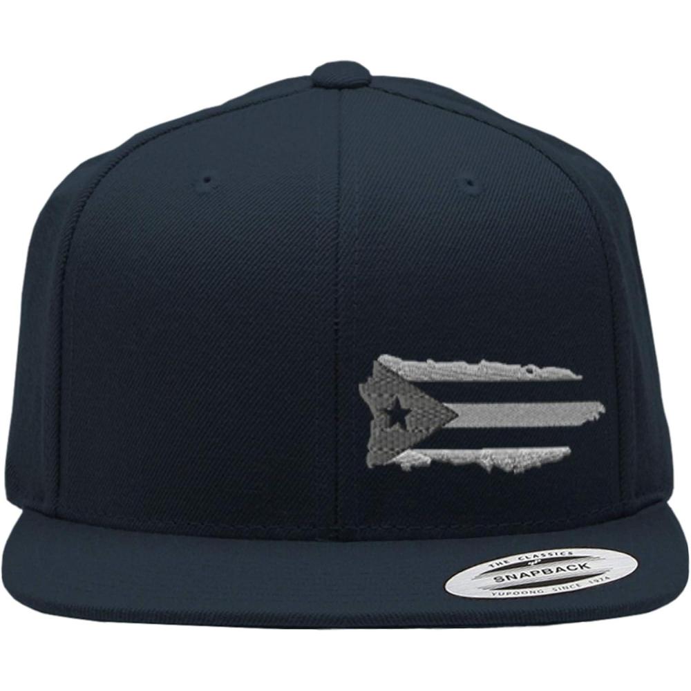 Snapback Flat Bill Left Side Panel Puerto Rico Island Map Flag A Embroidery(Dark Grey)