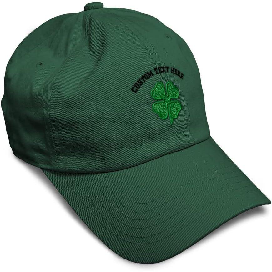Soft Baseball Cap 4 Leaf Clover St Patrick’s Day Shamrock Cotton Celtic Clover Dad Hats for Men & Women(Forest Green Personalized Text Here)