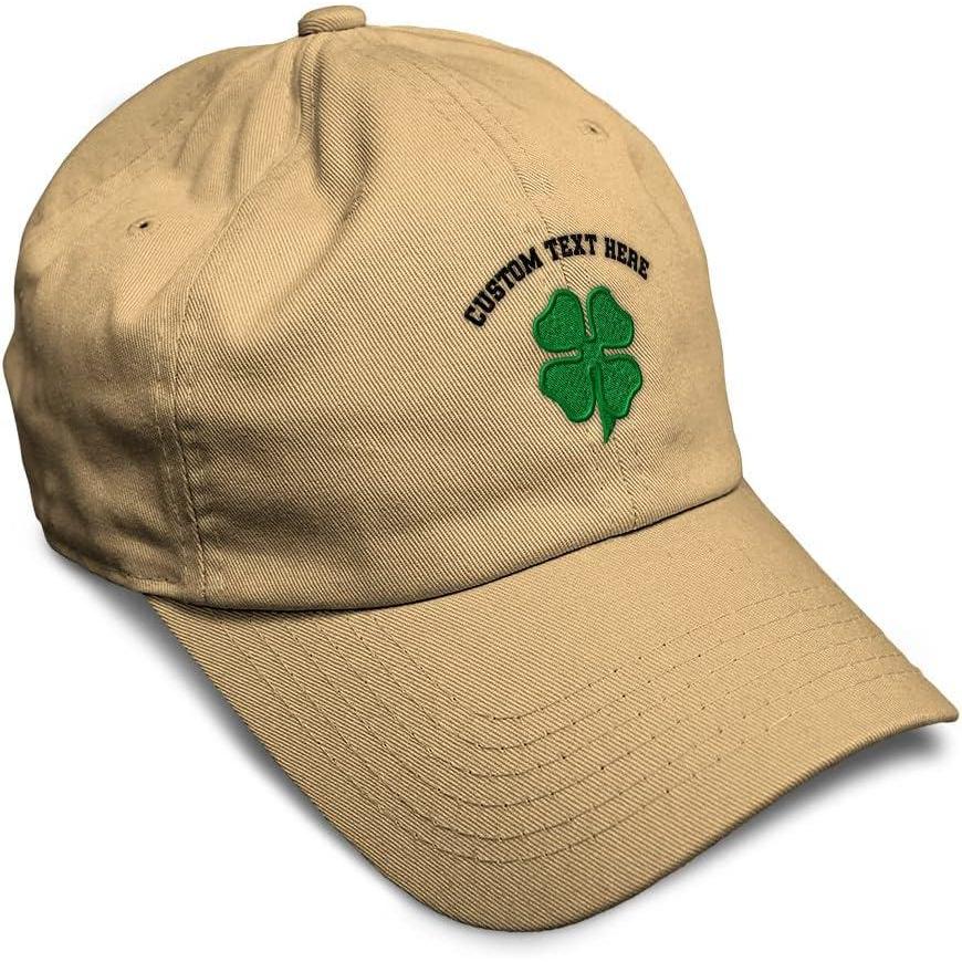 Soft Baseball Cap 4 Leaf Clover St Patrick’s Day Shamrock Cotton Celtic Clover Dad Hats for Men & Women(Khaki Personalized Text Here)