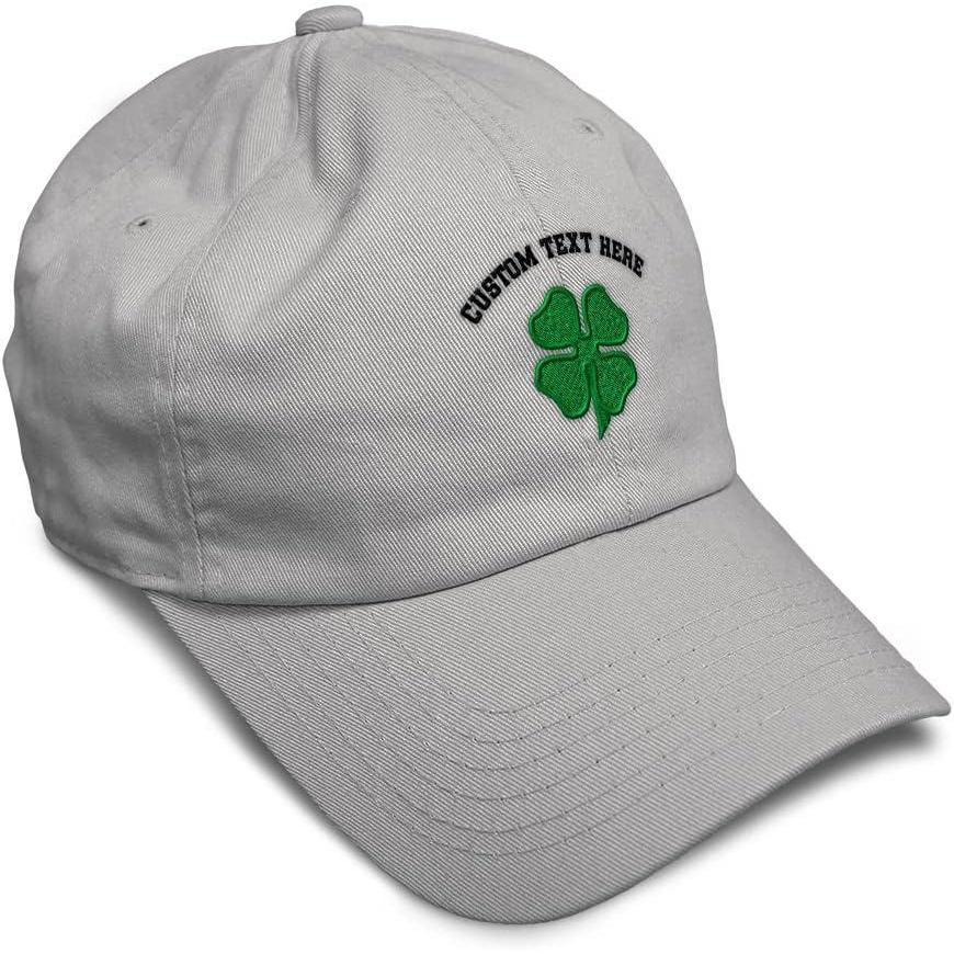 Soft Baseball Cap 4 Leaf Clover St Patrick’s Day Shamrock Cotton Celtic Clover Dad Hats for Men & Women(Light Grey Personalized Text Here)