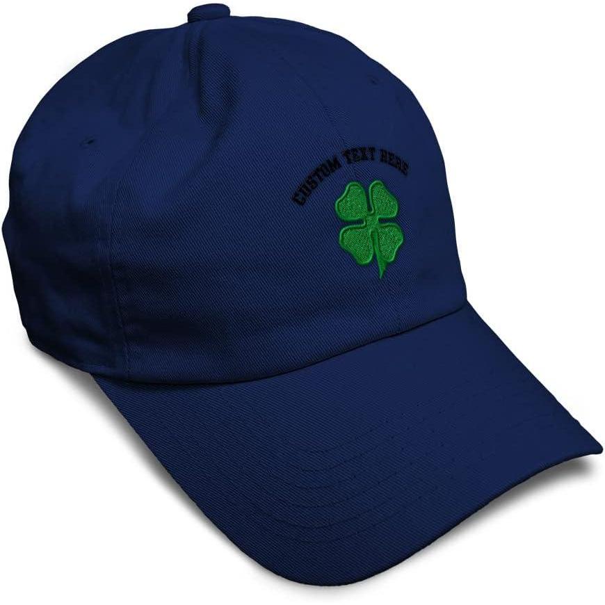 Soft Baseball Cap 4 Leaf Clover St Patrick’s Day Shamrock Cotton Celtic Clover Dad Hats for Men & Women(Navy Personalized Text Here)