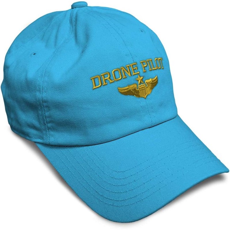Soft Baseball Cap Drone Pilot Gold Embroidery Insignias UFO Twill Cotton Veteran Dad Hats for Men & Women(Aqua Design Only)