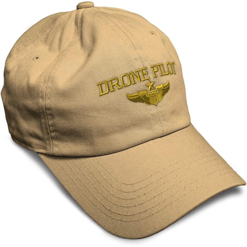 Soft Baseball Cap Drone Pilot Gold Embroidery Insignias UFO Twill Cotton Veteran Dad Hats for Men & Women(Khaki Design Only)