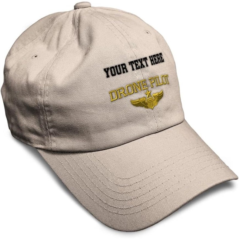 Soft Baseball Cap Drone Pilot Gold Embroidery Insignias UFO Twill Cotton Veteran Dad Hats for Men & Women(Stone Personalized Text Here)