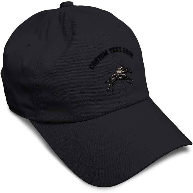 Soft Baseball Cap Jokey Horse Race Embroidery Farm and Domesticated Animals Cotton Dad Hats for Men & Women(Black Personalized Text Here)