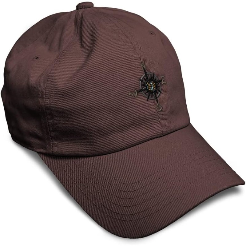 Soft Baseball Cap Nautical Compass Embroidery Boats Cotton Dad Hats for Men & Women(Brown Design Only)