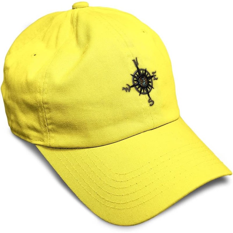 Soft Baseball Cap Nautical Compass Embroidery Boats Cotton Dad Hats for Men & Women(Yellow Design Only)
