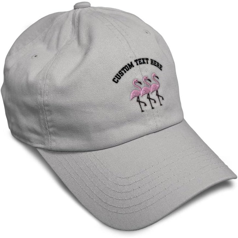 Soft Baseball Cap Pink Flamingos Embroidery Wild Animals Twill Cotton Dad Hats for Men & Women(Light Grey Personalized Text Here)