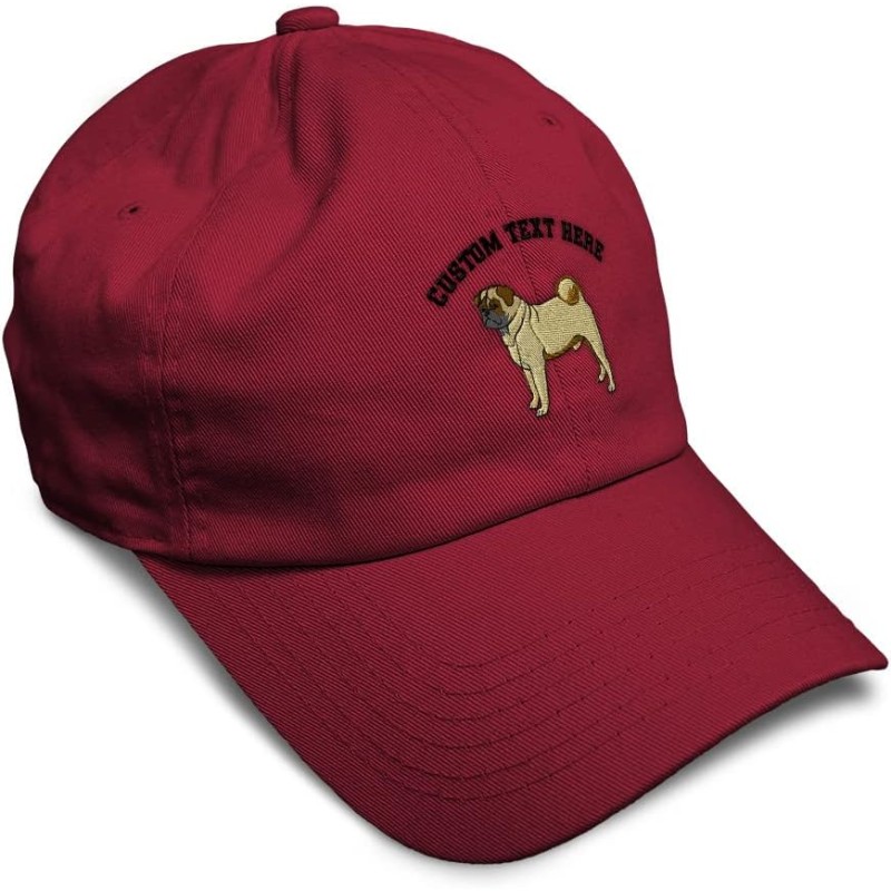 Soft Baseball Cap Pug Dog A Embroidery Dogs Pug Twill Cotton Wolf Dad Hats for Men & Women(Burgundy Personalized Text Here)