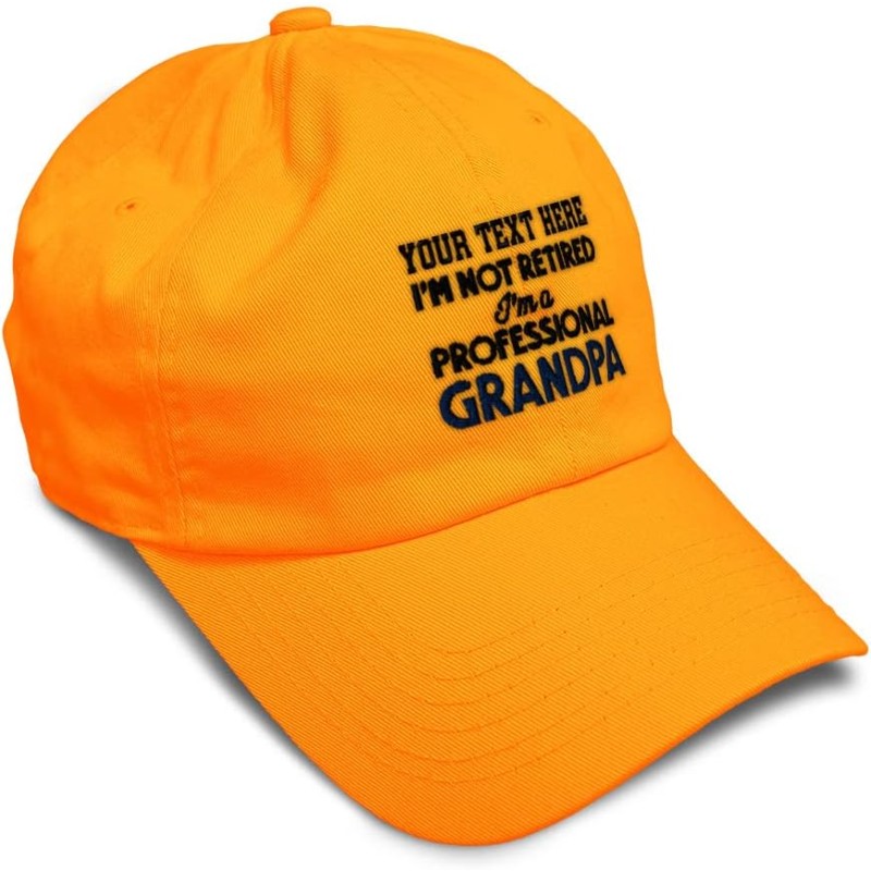 Soft Baseball Cap Retired Professional Grandpa Embroidery Grandfather Funny Cotton Dad Hats for Men & Women(Orange Personalized Text Here)