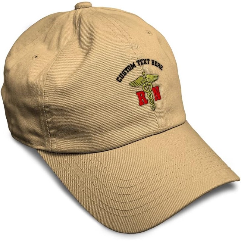Soft Baseball Cap Rn Logo Embroidery Nurse Rn Twill Cotton Chaplain Cross Dad Hats for Men & Women(Khaki Personalized Text Here)