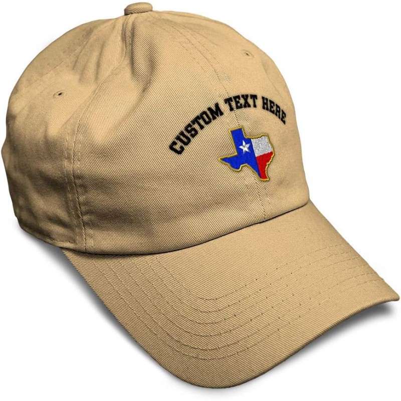 Soft Baseball Cap Texas State Flag Map A Embroidery Flags State Cotton Country Dad Hats for Men & Women(Khaki Personalized Text Here)