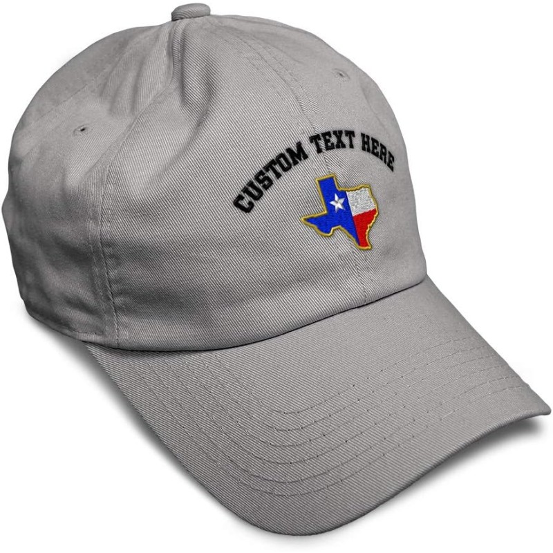 Soft Baseball Cap Texas State Flag Map A Embroidery Flags State Cotton Country Dad Hats for Men & Women(Light Grey Personalized Text Here)