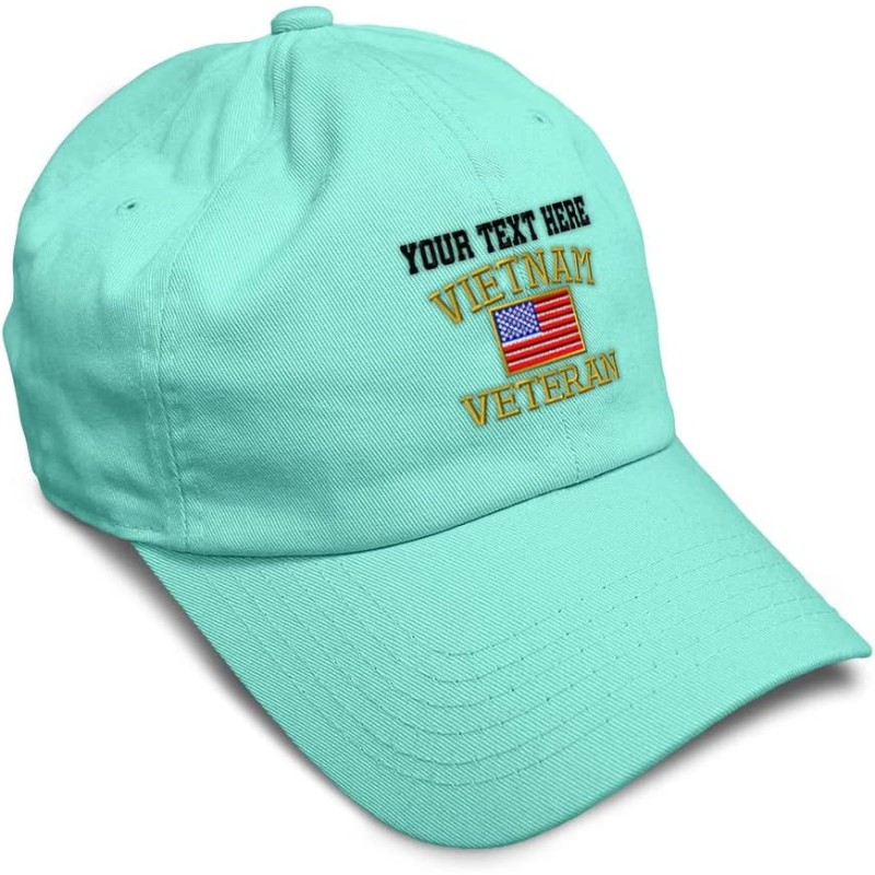 Soft Baseball Cap Vietnam Veteran War B Embroidery Flags USA Twill Cotton Army Dad Hats for Men & Women(Mint Personalized Text Here)
