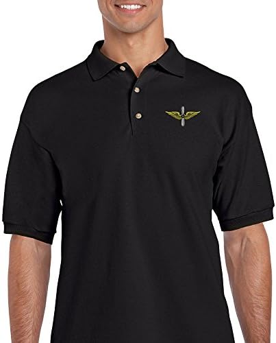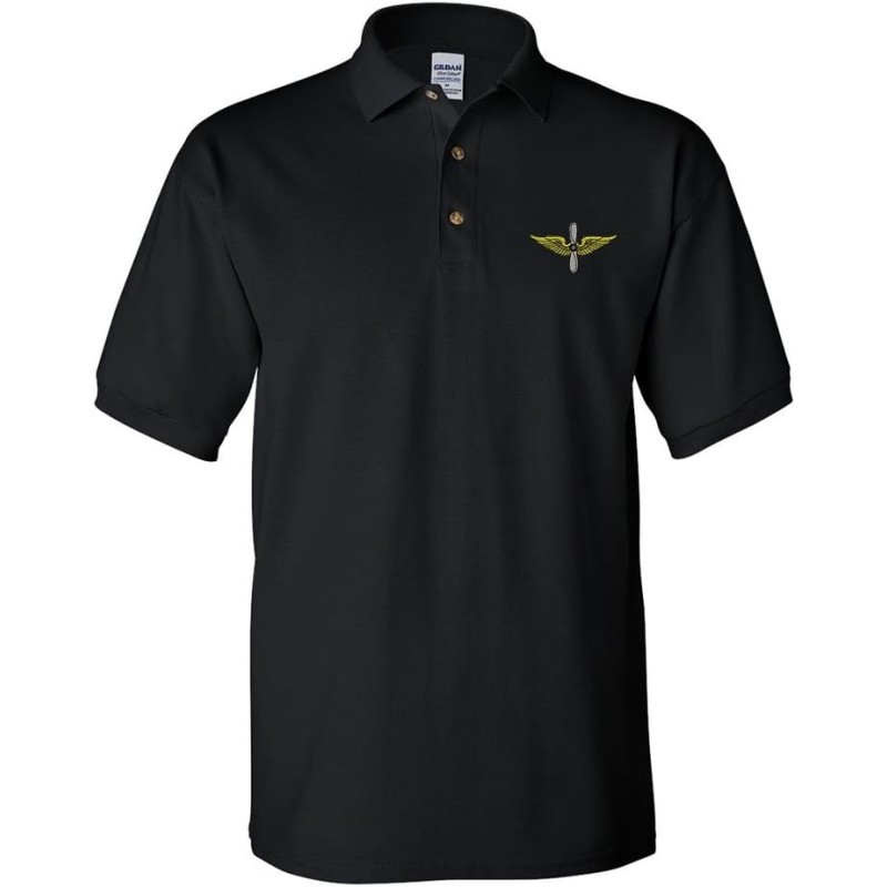 Speedy Pros Army Aviation Embroidery Design Adult Unisex Cotton Polo Shirt Golf Shirt(Black)