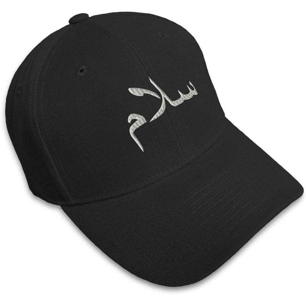Speedy Pros Baseball Cap Arabic Peace Salam Embroidery Typography & Symbols Letters Acrylic(Black)