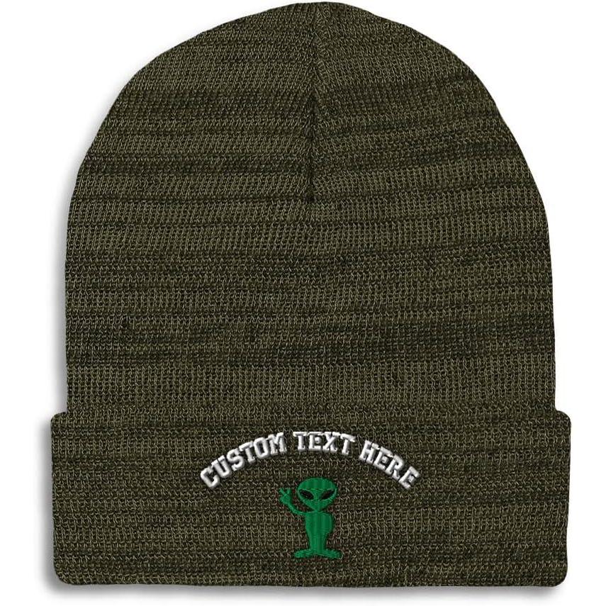 Speedy Pros Beanies for Men Alien Peace Sign Embroidery Symbols Winter Hats for Women Acrylic Skull Cap 1 Size(Heather Olive Green Personalized Text Here)