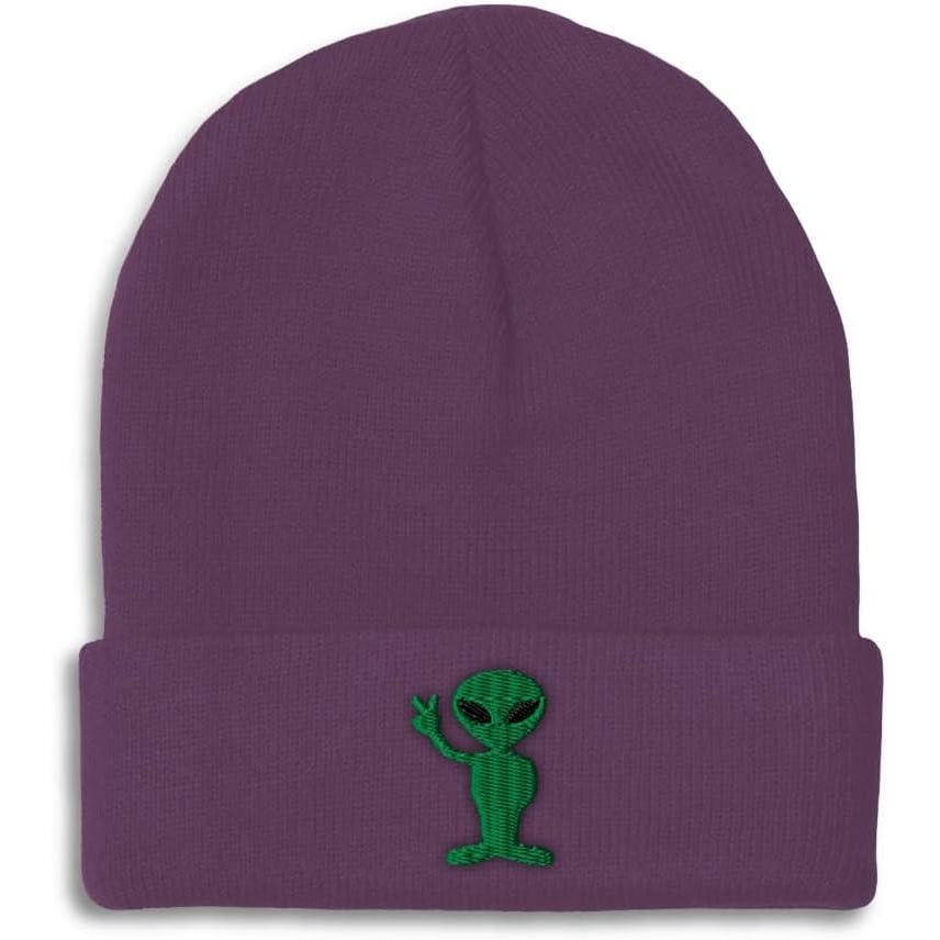 Speedy Pros Beanies for Men Alien Peace Sign Embroidery Symbols Winter Hats for Women Acrylic Skull Cap 1 Size(Purple Design Only)