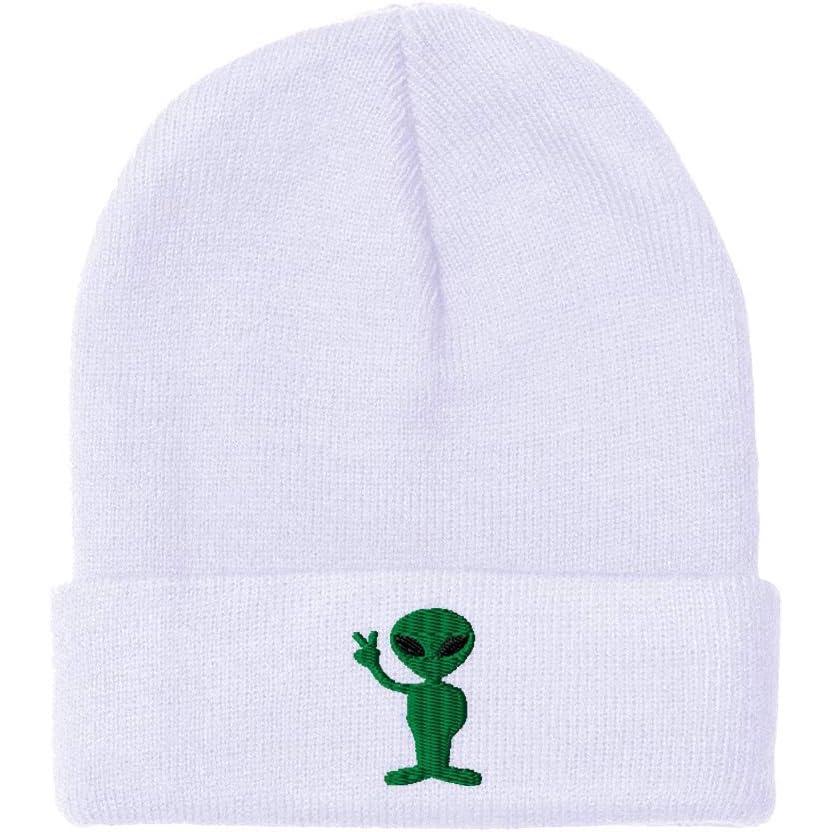 Speedy Pros Beanies for Men Alien Peace Sign Embroidery Symbols Winter Hats for Women Acrylic Skull Cap 1 Size(White Design Only)