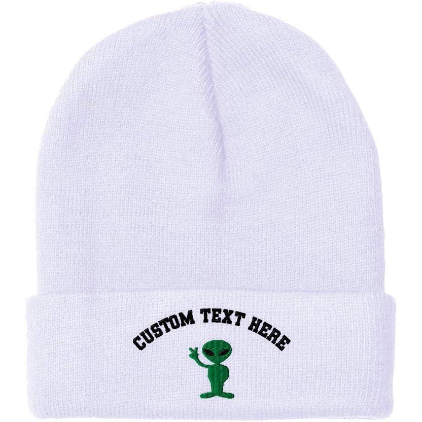 Speedy Pros Beanies for Men Alien Peace Sign Embroidery Symbols Winter Hats for Women Acrylic Skull Cap 1 Size(White Personalized Text Here)