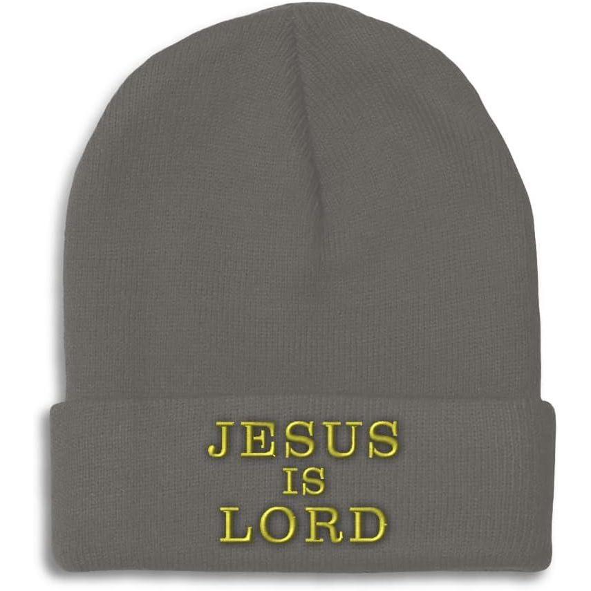 Speedy Pros Beanies for Men Jesus is Lord A Embroidery God Jesus Winter Hats for Women Acrylic Skull Cap 1 Size(Dark Grey Design Only)