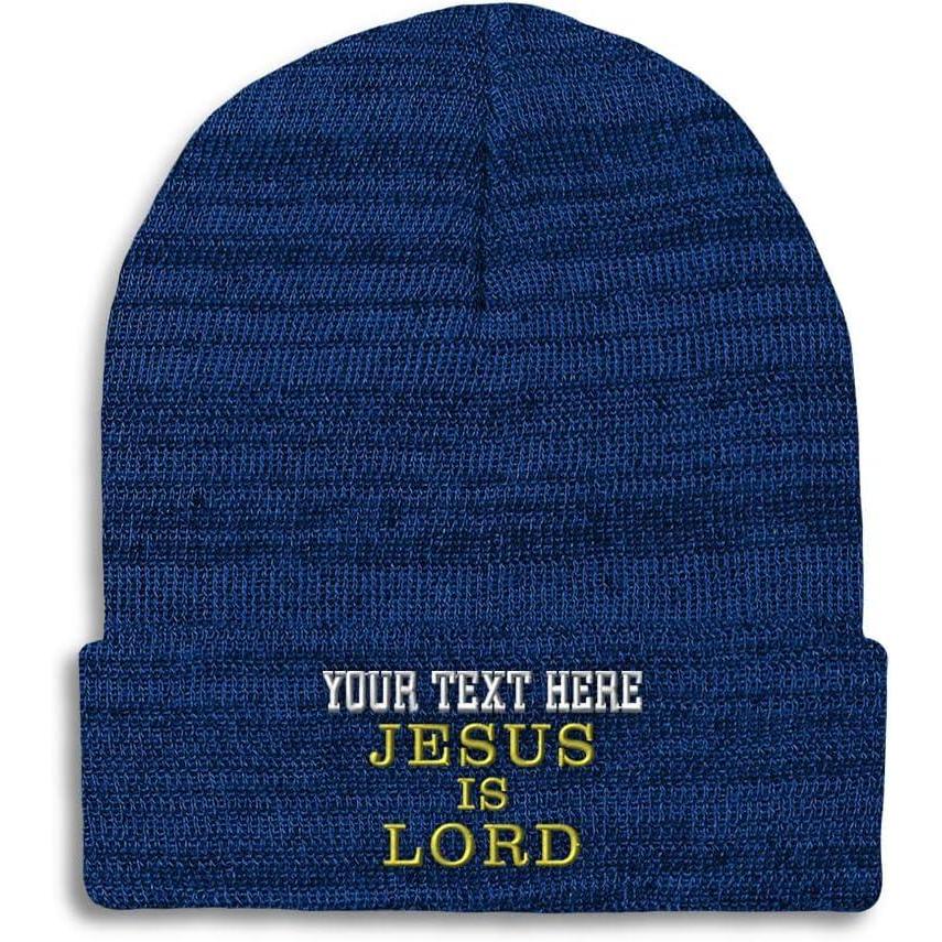 Speedy Pros Beanies for Men Jesus is Lord A Embroidery God Jesus Winter Hats for Women Acrylic Skull Cap 1 Size(Heather Royal Blue Personalized Text Here)