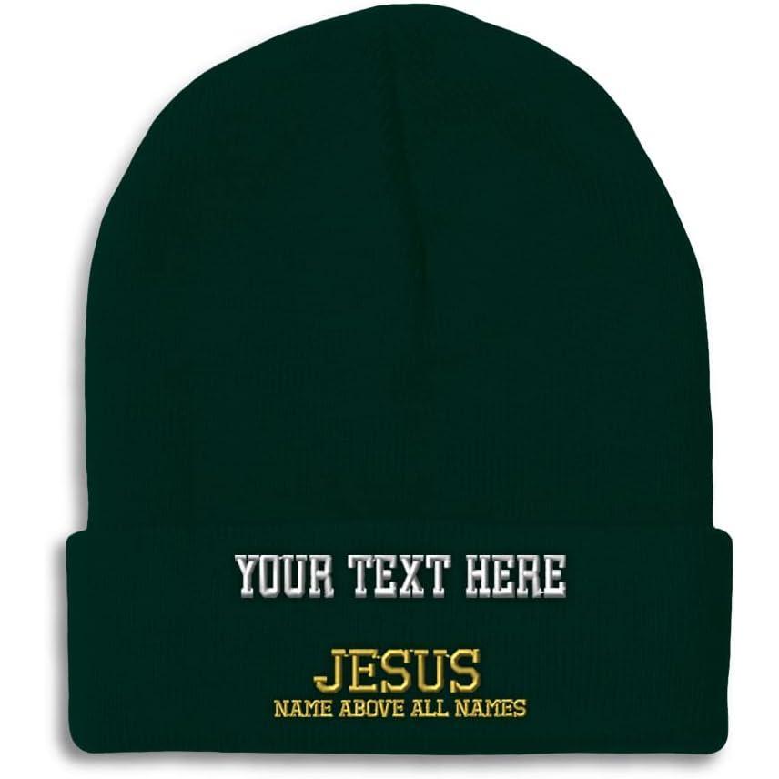 Speedy Pros Beanies for Men Jesus Name Above All Names Embroidery Jesus Winter Hats for Women Acrylic Skull Cap 1 Size(Forest Green Personalized Text Here)