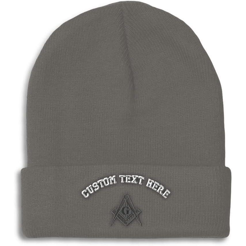 Speedy Pros Beanies for Men Mason Gray Thread Embroidery Construction Winter Hats for Women Acrylic Skull Cap 1 Size(Dark Grey Personalized Text Here)