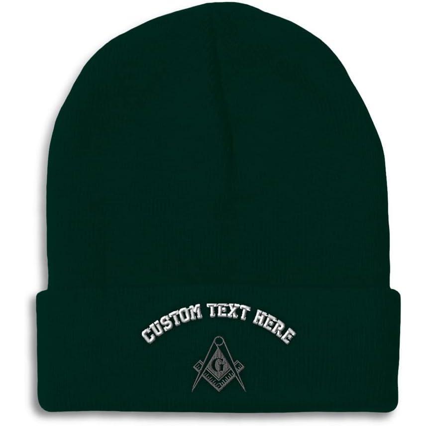 Speedy Pros Beanies for Men Mason Gray Thread Embroidery Construction Winter Hats for Women Acrylic Skull Cap 1 Size(Forest Green Personalized Text Here)