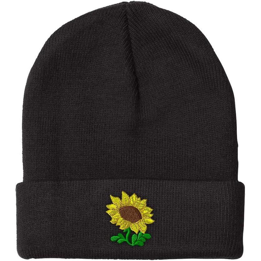 Speedy Pros Beanies for Men Plants Fringe Sunflower Embroidery Winter Hats for Women Acrylic Skull Cap 1 Size(Black Design Only)