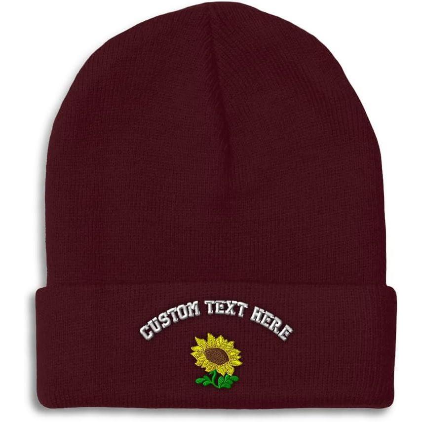 Speedy Pros Beanies for Men Plants Fringe Sunflower Embroidery Winter Hats for Women Acrylic Skull Cap 1 Size(Burgundy Personalized Text Here)