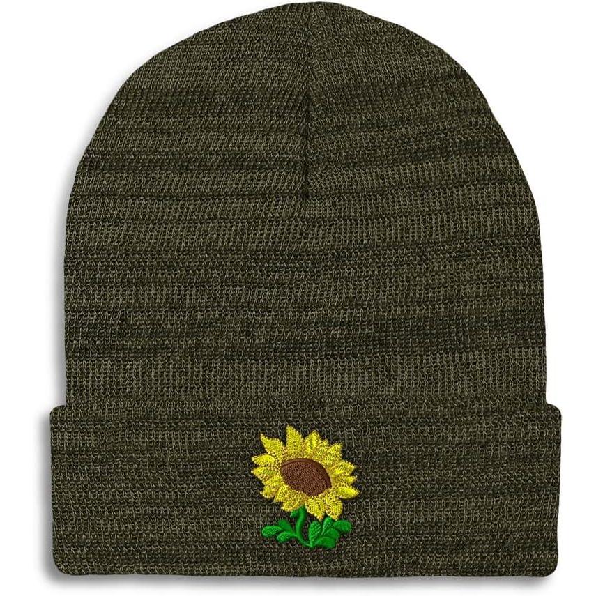 Speedy Pros Beanies for Men Plants Fringe Sunflower Embroidery Winter Hats for Women Acrylic Skull Cap 1 Size(Heather Olive Green Design Only)