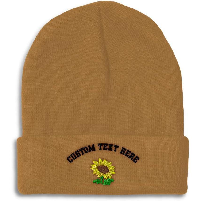 Speedy Pros Beanies for Men Plants Fringe Sunflower Embroidery Winter Hats for Women Acrylic Skull Cap 1 Size(Khaki Personalized Text Here)