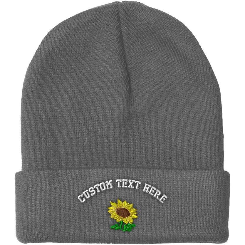 Speedy Pros Beanies for Men Plants Fringe Sunflower Embroidery Winter Hats for Women Acrylic Skull Cap 1 Size(White Personalized Text Here)