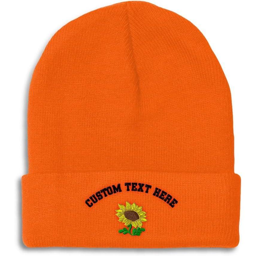 Speedy Pros Beanies for Men Plants Fringe Sunflower Embroidery Winter Hats for Women Acrylic Skull Cap 1 Size(Orange Personalized Text Here)