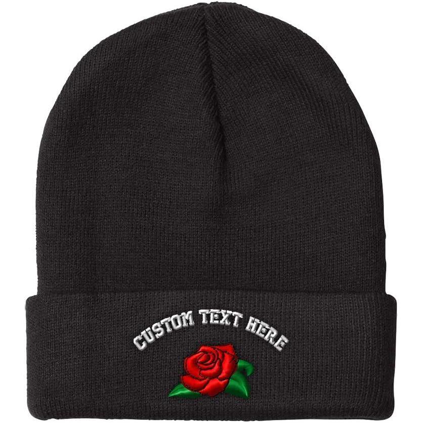 Speedy Pros Beanies for Men Rose Flower A Embroidery Flowers and Plants Winter Hats for Women Acrylic Skull Cap 1 Size(Black Personalized Text Here)