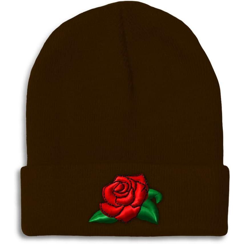 Speedy Pros Beanies for Men Rose Flower A Embroidery Flowers and Plants Winter Hats for Women Acrylic Skull Cap 1 Size(Brown Design Only)