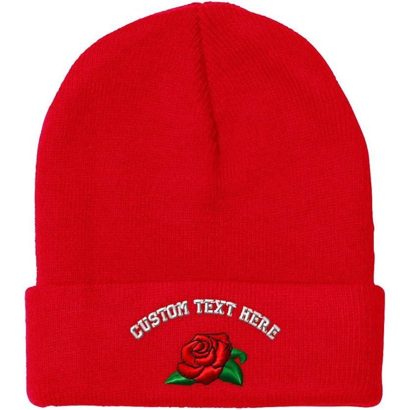 Speedy Pros Beanies for Men Rose Flower A Embroidery Flowers and Plants Winter Hats for Women Acrylic Skull Cap 1 Size(Red Personalized Text Here)